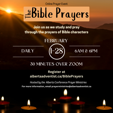 Prayer coordinators and prayer teams from different Alberta Conference churches will be leading us in looking at different instances of prayer found in God's word. We'll be studying who chose to pray, and why. We'll be reviewing what they said in prayer, and why that was significant. And when God speaks in return, we'll investigate what He has to say.