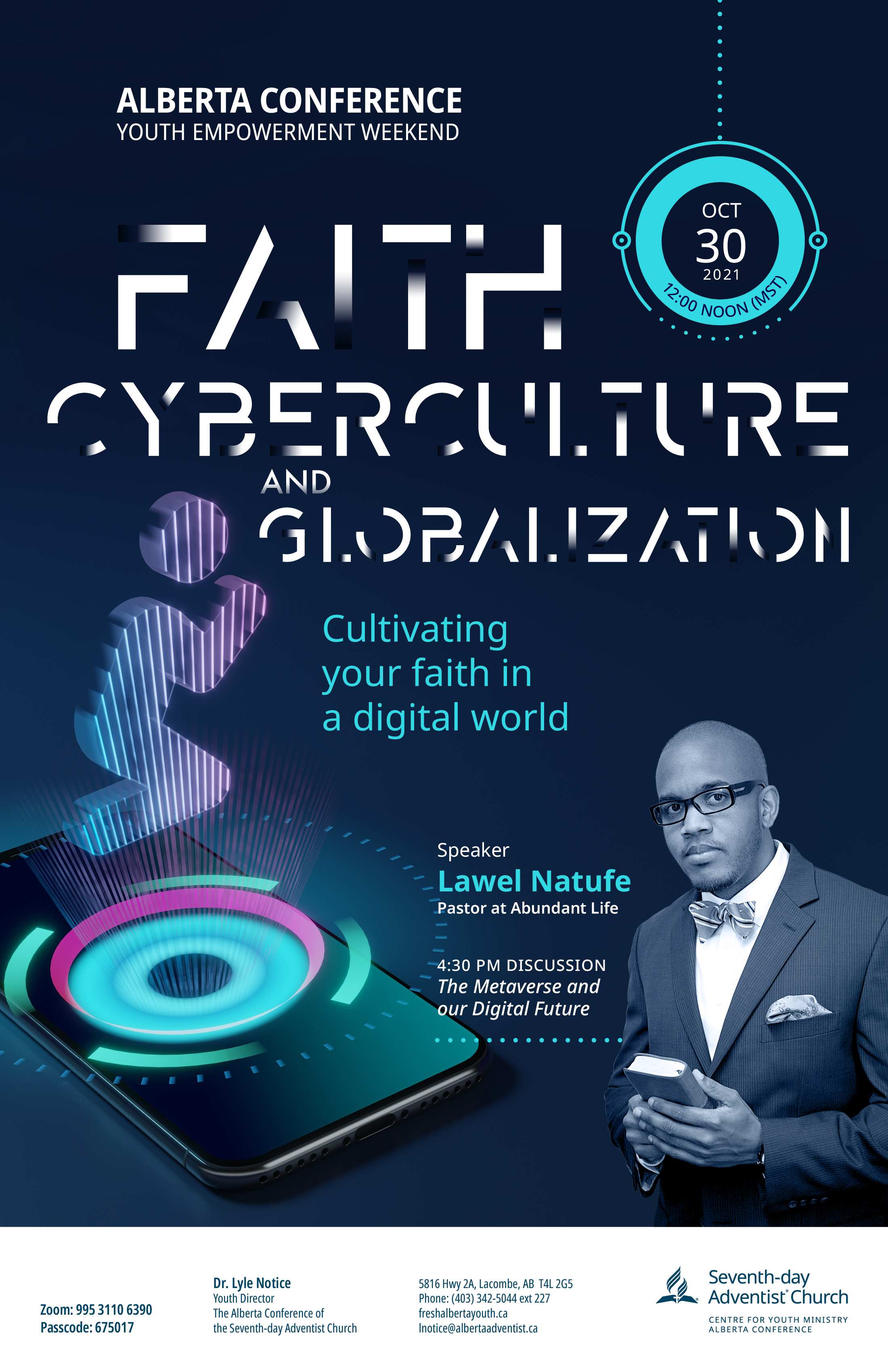 FAITH, CYBERCULTURE, and GLOBALIZATION With our world ever so changing and becoming more digital, cyberculture is on the rise. We are constantly connected online to our phones, social media, and apps. And with the coming of the metaverse how do we stay connected to spirituality and cultivate our faith? Join us with guest presenter Lawel Natufe as he shares how to stay connected to God and strengthen your faith. Date: October 30, 2021 Time: 12 noon 4:30 p.m. discussion “The Metaverse and our Digital World” ZOOM ID: 995 3110 6390 PASSCODE: 675017