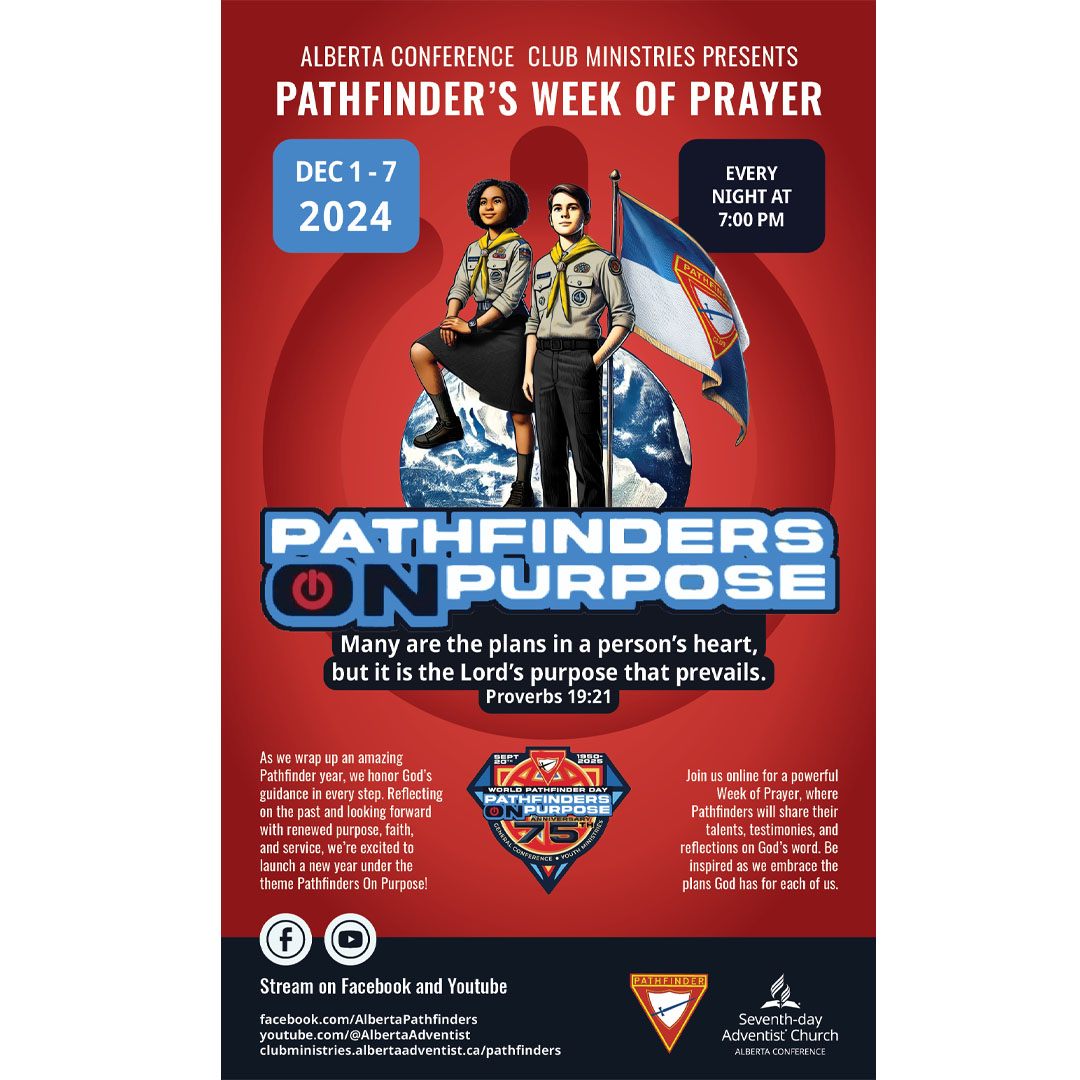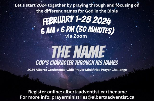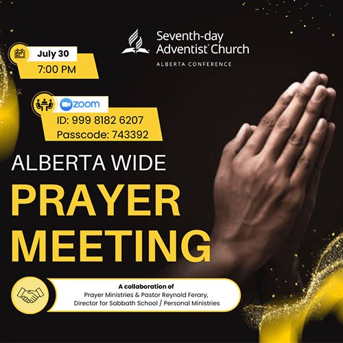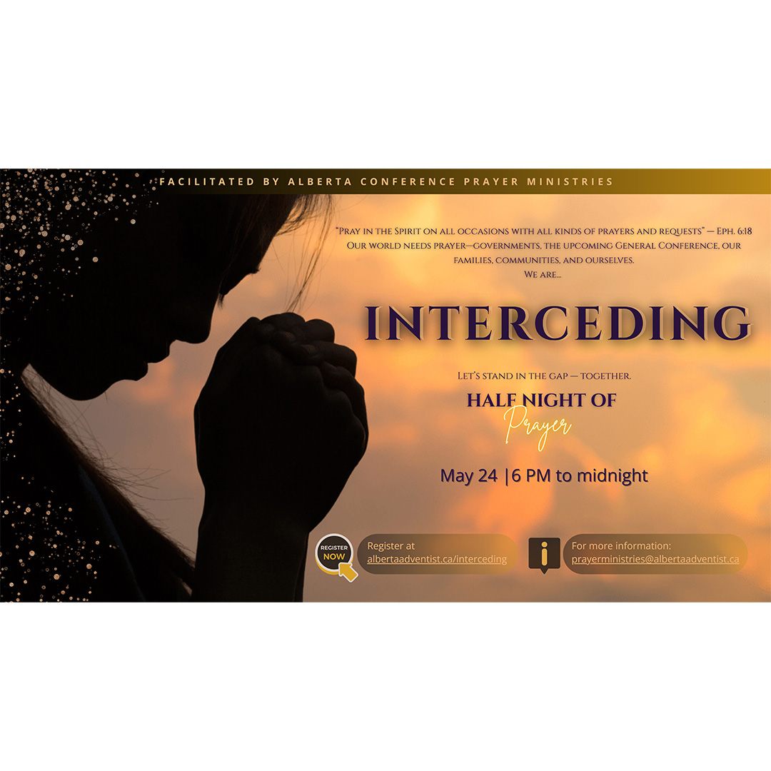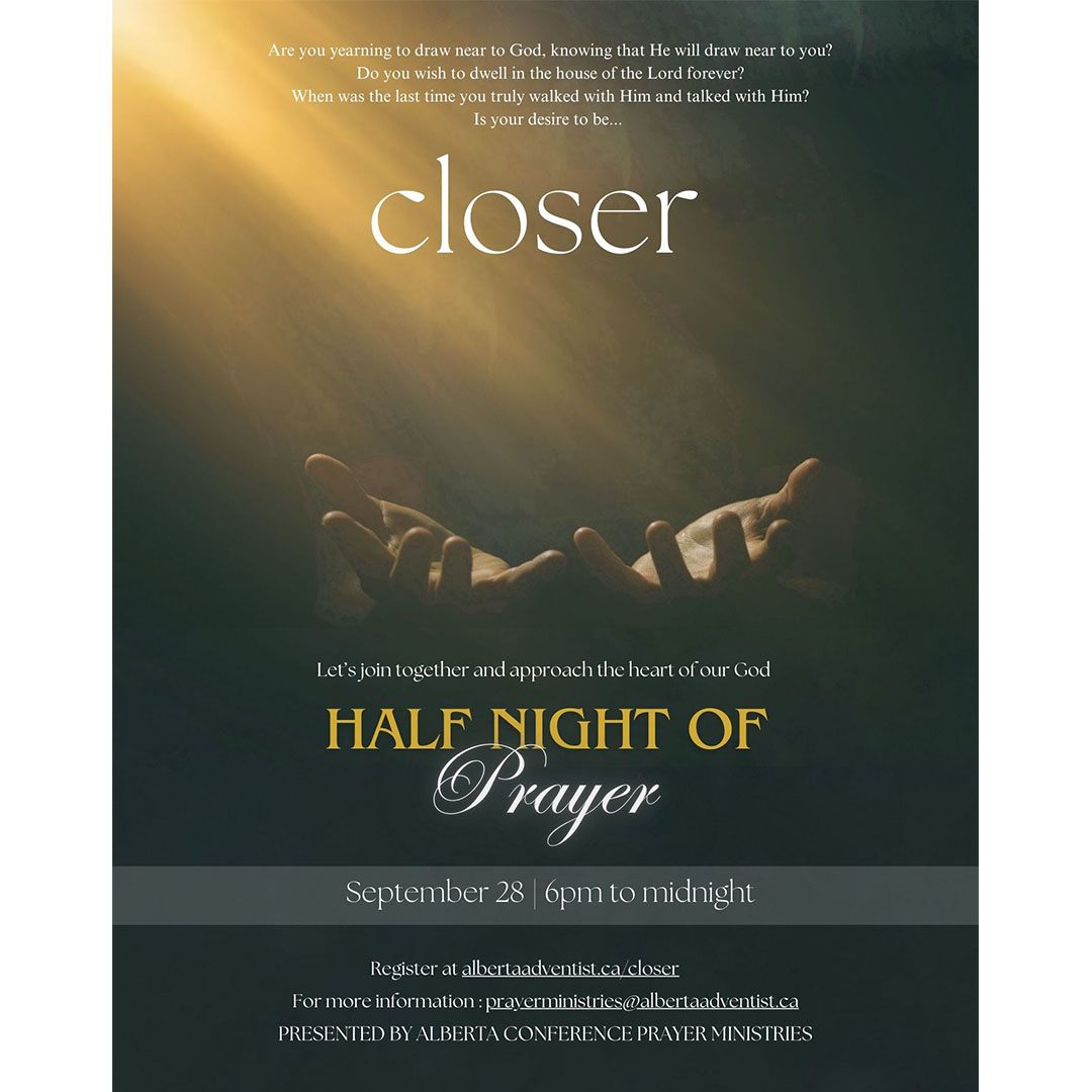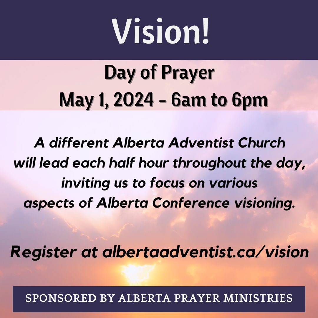Start off the year with God and your fellow Christian siblings with 31 Days of Prayer from January 1 to 31! From across the Alberta Conference, you are invited to come together for short devotionals and prayer every morning over Zoom from 6 AM to 6:30 AM and every Tuesday evening from 7 PM to 8 PM to kickstart 2022 in a powerful and prayerful way. Looking forward to praying with you! Please register to get the link. Register and get more information by sending an email to prayerministries@albertaadventist.ca