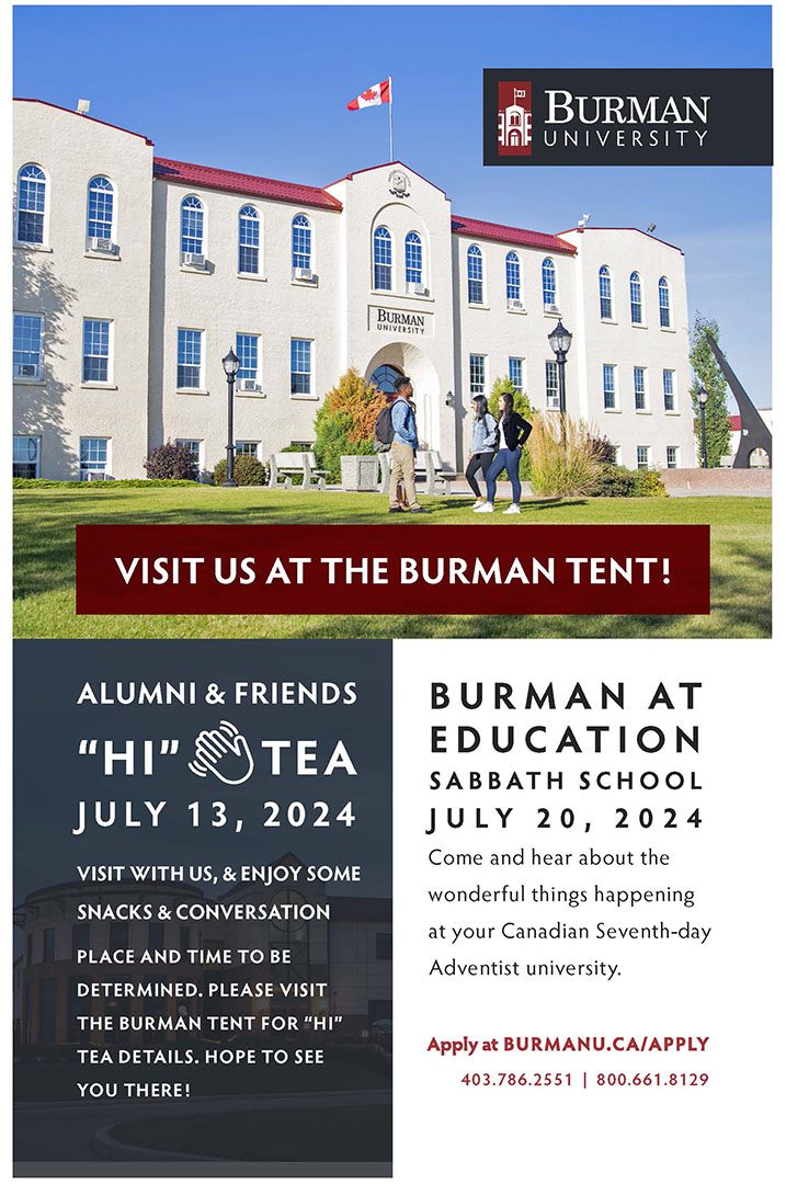 This year’s theme is “Living on Purpose.” The guest speakers will be Pastor Danielle Placide, Pastor James Anderson, and Curtis Letniak. Special features for the weekend are the alumni banquet, huge Sabbath potluck, Sunday breakfast, golf tournament, and more. For those who plan to attend the banquet pre-payment is mandatory and ticket sales will close on May 24. To pre-pay for the banquet and for more info please visit our website at: http://www.burmanu.ca/alumni/homecoming or call Shannon Bechthold at (403) 786-2533 or email alumni@burmanu.ca.