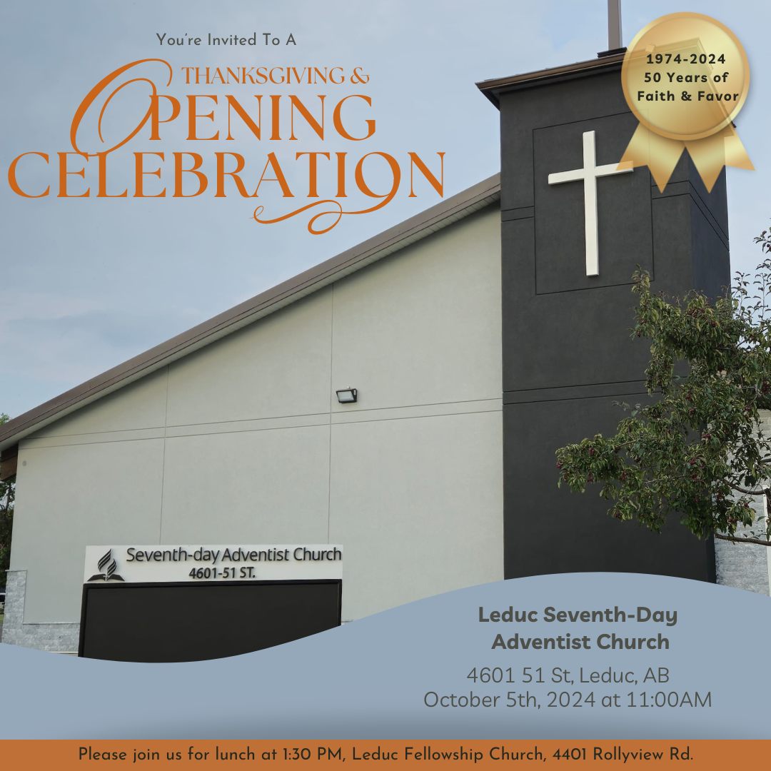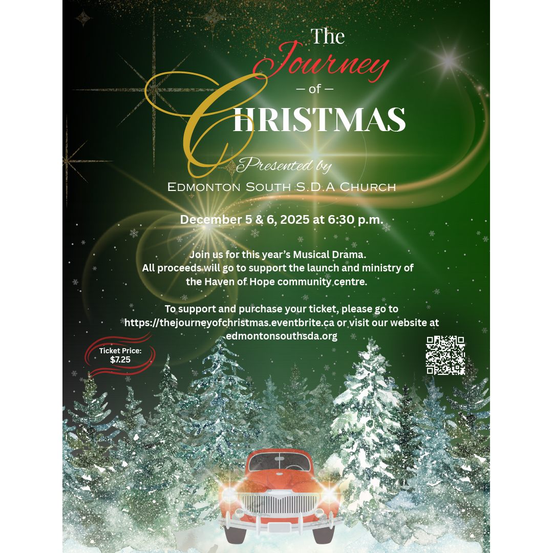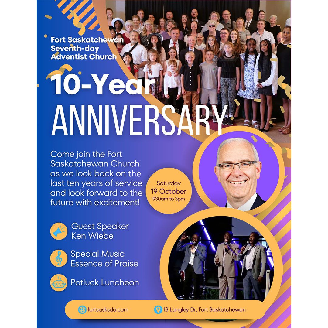 Christ the Way Adventist Church is celebrating 10 years of faith, fellowship, and God’s leading! Join us on Sabbath, November 8 for a special anniversary service under the inspiring theme, “Celebrating the Past, Embracing the Future.” This milestone Sabbath will be a time to look back with gratitude for all God has done and to look forward with hope and prayer for His continued guidance. We invite all past and present members, friends, and guests to come together for a day of worship, thanksgiving, and celebration. Location: 11520 Ellerslie Rd SW, Edmonton, AB Time: 10:00 a.m. – 2:00 p.m. Come celebrate with us as we honour the past, embrace the future, and give thanks to the Lord for 10 wonderful years at Christ The Way! The morning's celebration will be followed by a free concert in the evening starting at 6:00 pm.