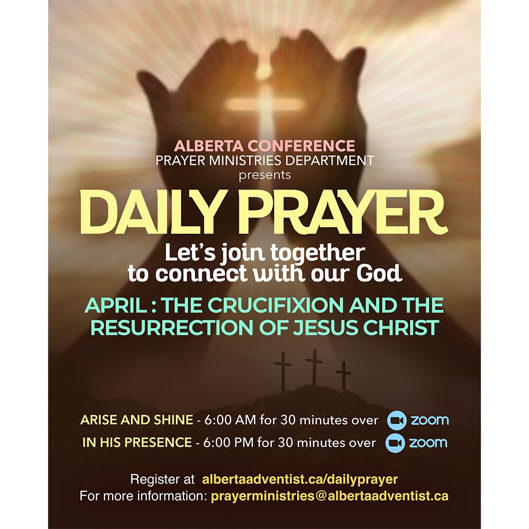 Spend thoughtful time reflecting on the final scenes of the life of Christ by joining our Daily Prayer sessions throughout the month of April. At 6 every morning and evening for 30 minutes, friends from across the Conference will be joining over Zoom to pray together and to review in chronological order the passages from the Gospels that touch on the closing moments of Christ’s time on earth. If you’re interested, sign up to attend Arise and Shine in the mornings and In His Presence in the evenings, and be blessed!