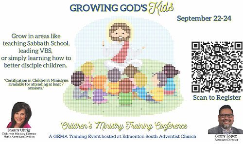 Are you passionate about reaching children for Jesus? Looking for innovative ways to make Sabbath School class the best it can be? Join the Children's Ministry Directors from the North American Division as they instruct and empower attendees to impact children for eternity. Sponsored by GEMA & hosted at Edmonton South Adventist Church. $20 per person, with Sabbath lunch and supper provided. Register at https://forms.office.com/r/EuVPrGc0nc or email GEMAinfo@albertaadventist.ca for more info.
