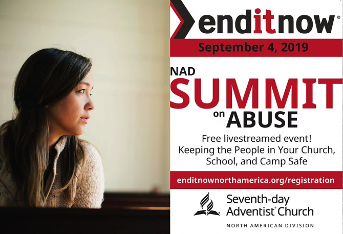 The NAD Summit on Abuse is a part of "enditnow". The official "enditnow" Emphasis Day is August 24, 2019, but can be held on any date convenient for your church. Launching an "enditnow" campaign will help your church draw awareness to the issue of abuse, promote collaboration with the community to develop solutions, and help your church become a safe place for everyone. For more information, visit https://www.enditnownorthamerica.org