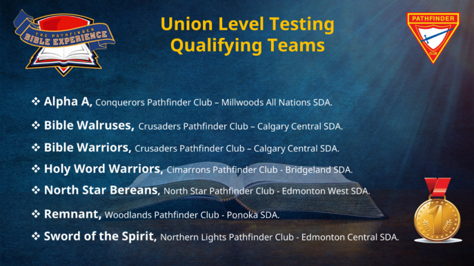 We are excited to announce that seven Alberta Conference Pathfinder Teams are advancing to the next round of the Bible Experience. They will be joining teams from across Canada at the SDACC-Union Level event, with the goal of advancing to the NAD Finals in Battle Creek, MI.